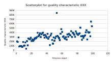 Диаграмма рассеяния (также точечная диаграмма, англ. scatter plot) — математическая диаграмма, изображающая значения двух переменных в виде точек на декартовой плоскости. Могут использоваться и полярные координаты, особенно в случаях, когда одна из переменных представляет собой физическое направление или имеет циклический характер.