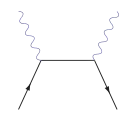 Фермионы представлены прямой линией со стрелкой, а частицы, переносчики взаимодефствий (бозоны), — волнистой или пунктирной линией. Последовательность испускания или поглощения фотона называется «соединение» или «связь»; он представлен вершиной, точкой соединения линий[22]. Связь называет излучение или поглощение по-разному, потому что оба явления имеют одинаковую амплитуду, равную постоянной тонкой структуры для квантовой электродинамики или константе связи сильного ядерного взаимодействия для квантовой хромодинамики.