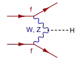 - Наиболее вероятные реакции рождения бозона Хиггса[17]