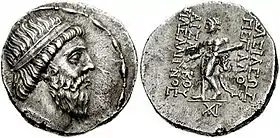 Драхма Митридата I Парфянского, которая показывает его носящим бороду и королевскую диадему на голове