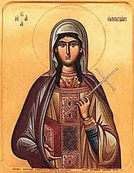 - Святая Олимпиада[14] Константинопольская, диакониса; (409 г.). Её высоко ценил Иоанн Златоуст, за преданность которому она пострадала и умерла в заточении. Память совершается 7 августа (25 июля по старому стилю).
