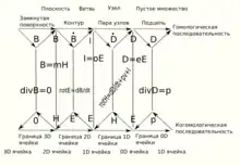 Крон в первой главе своей книги [78] вводит понятия границы ячеек, ячейки и матрицы соединения между ними. Причём, одномерная ячейка это дифференциальная форма степени 1, двумерная ячейка это 2-форма а трёхмерная ячейка соответственно 3-форма.