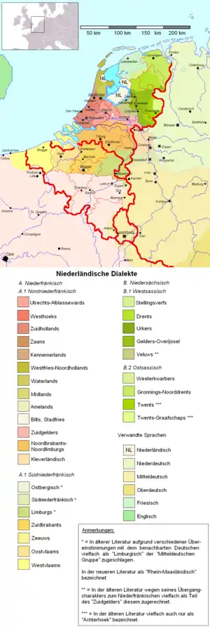 - лимерский говор — переходный к нижнесаксонским (Liemers)