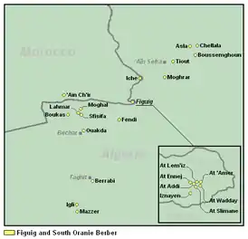 Фигиг (Марокко) Эль-Баяд, Наама, Бешар — горы Ксур, бассейн реки Гир, оазисы округа Табельбала (Алжир) |