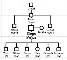 - Гомес Диас, граф Сальданья и Льебана, был женат на Муниадомне Фернандес, дочери графа Кастилии Фернана Гонсалеса.