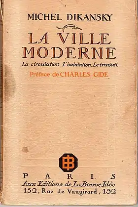 - Michel Dikansky (Préface de Charles Gide) "La ville moderne: la circulation, l'habitation, le travail". Paris: Aux éditions de "La Bonne Idée, 1927, 149 p.