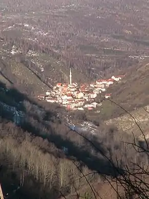 Село находится приблизительно на расстоянии 1 километра от автомобильной дороги Брод — Драгаш.