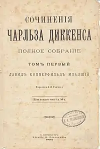 На русском языке переводы произведений Диккенса появились в конце 1830-х годов. В 1838 году в печати появились отрывки «Посмертных записок Пиквикского клуба», позднее были переведены рассказы из цикла «Очерки Боза». Все его большие романы переведены по несколько раз, переведены и все мелкие произведения, и даже ему не принадлежащие, но правленные им как редактором.