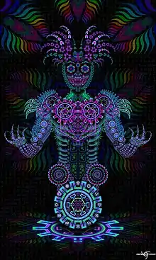 DMT — психоделик, вызывающий изменённое состояние сознания с переживанием, схожими с религиозно-мистическим опытом[5], с интенсивными визуальными и слуховыми галлюцинациями, изменением восприятия времени и реальности.