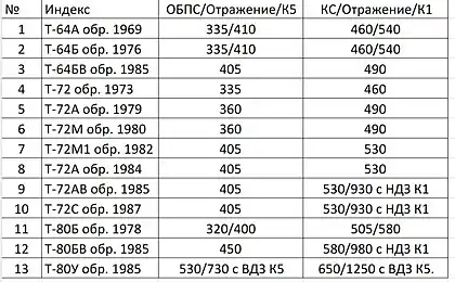 По данным испытаний 1982 года, в результате установки комплекса динамической защиты (КДЗ) «Контакт» на основных танках СССР вероятность поражения танков наземными кумулятивными средствами поражения уменьшилась: для Т-55А и Т-62 — в 4—4,3 раза, для Т-80Б, Т-72А и Т-64Б — в 1,8—2 раза[12].