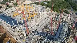Летом 2013 года был закончен нулевой цикл работ. Реконструкция находится на этапе укрепления фундаментов сохраняемой исторической стены западной трибуны.