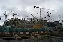 Первоначально стадион планировалось реконструировать с сохранением фасадов[* 2], как того требовал охранный статус памятника архитектуры, однако постановлением правительства Москвы от 12 июля 2011 года границы территории объекта культурного наследия «Стадион „Динамо“» были изменены[17], после чего были снесены восточная, северная и южная трибуны[18]. Единственным подлинным фрагментом, оставшимся от исторического здания, стала западная трибуна. Также были демонтированы осветительные мачты, которые, благодаря своим размерам, были одним из ориентиров северной части Москвы.