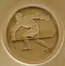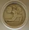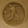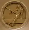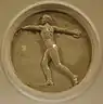 Центральный и боковые залы станции декорированы барельефами в виде тондо. В верхних частях пилонов размещены фарфоровые медальоны, общее количество 60[4] (из них 23 различных медальона; ранее их насчитывалось 24, но при установке гермозатворов были утрачены несколько барельефов, в том числе медальоны «спортсменка со скакалкой»). Медальоны были изготовлены на Ленинградском фарфоровом заводе по образцам скульптора Елены Янсон-Манизер. На медальонах изображены аллегории 21 вида соревнований, по которым проводилась Спартакиады народов СССР: метание диска, теннис, штанга, скалолазание, конькобежный спорт, бокс, хоккей с шайбой, лыжный спорт, ручной мяч, художественная гимнастика, спортивная гимнастика (бревно), спортивная гимнастика (конь), спортивная гимнастика (брусья), футбол, горные лыжи, толкание ядра, метание копья, мужское фигурное катание, женское фигурное катание, бег с барьерами, гиревой спорт[4]. Для некоторых барельефов прототипами служили реальные спортсмены. Например, конькобежка — это Мария Исакова[27], а футболист — Григорий Федотов[28]. На первом от южного выхода медальоне с изображением горнолыжника есть надпись: «Янсон-Манизер, 1933»[4].