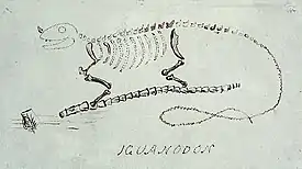 Термин «динозавр» ввёл в 1842 году английский биолог Ричард Оуэн для описания первых ископаемых остатков древних ящеров, поражавших воображение учёных своими размерами[6]. Слово происходит от др.-греч. δεινός (deinos) — «страшно великий, страшный, ужасный, опасный» и σαῦρος, σαύρα — «ящер, ящерица»[7]. Хотя таксономическое имя часто интерпретировалось как некое указание на зубы, когти и другие внушающие страх особенности динозавров, на самом же деле Оуэн дал этот термин, указывая на их размер и величие[8]. Поясняя свои взгляды, Оуэн называл динозавров толстокожими вторичного периода. К толстокожим в XIX веке относили крупных и массивнотелых бегемотов, слонов и носорогов, а вторичным периодом считали мезозойскую эру.