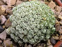 Листья расположены черепитчато, реже образуют розетки. Листья мелкие, плотно сидящие, снизу отмирающие, цельнокрайные или зубчатые, плоские или по краю загнутые, у многих видов имеют беловатый или желтоватый мучнистый налёт, реже с простым опушением.