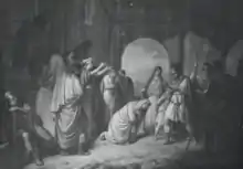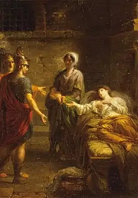 Положение Диона ухудшилось из-за трагедии в семье. Его единственный сын Гиппарин, которому было примерно 14—16 лет, покончил с собой, бросившись вниз головой с крыши, — либо «огорченный и разгневанный какою-то пустячной шуткой»[83], либо не выдержав строгого отцовского воспитания после жизни в разврате и пьянстве при дворе Дионисия[42]. Для Диона это стало тяжёлым ударом; к тому же его враги использовали гибель подростка, чтобы распустить слухи, будто правитель за отсутствием сыновей хочет сделать своим преемником Аполлократа (сына Дионисия Младшего), приходившегося внучатым племянником ему и родным племянником его жене[84].