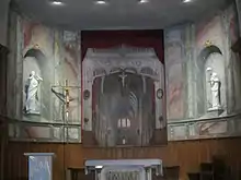 Диорама (др.-греч. διά (dia) — «через», «сквозь», и ὅραμα (horama) — «вид», «зрелище») — лентообразная, изогнутая полукругом живописная картина с передним предметным планом (сооружения, реальные и бутафорские предметы). Также вид живописи с нанесением изображения на просвечивающую поверхность.[1] В настоящее время термин диорама используется для обозначения аналога панорамы, занимающую часть окружности. В первой половине XIX века диорама являлась самостоятельным направлением. Диораму можно считать непосредственным предшественником кинематографа.[2]