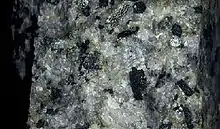 Диорит (фр. diorite, др.-греч. διορίζω — разграничиваю, различаю) — магматическая плутоническая горная порода среднего состава, нормального ряда щёлочности. Состоит из плагиоклаза (андезина, реже олигоклаза-андезина) и одного или нескольких цветных минералов, чаще всего обыкновенной роговой обманки. Встречаются также биотит или пироксен. Цветных минералов около 30 %. Иногда присутствует кварц, и тогда порода носит название кварцевого диорита.