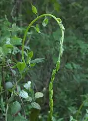 Многолетняя двудомная травянистая лиана[4]. Корень мясистый, стержневой.
