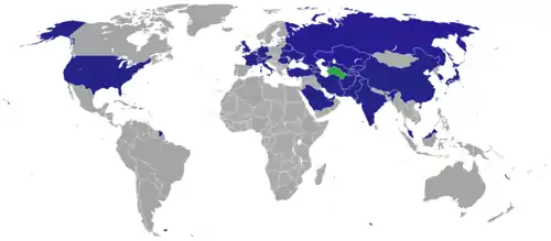 Список дипломатических миссий Туркменистана — наибольшее количество дипломатических представительств Туркменистана расположено в странах Азии и Европы, и в первую очередь в странах СНГ. За рубежом действуют 30 дипломатических представительств и консульств Туркменистана[1].