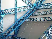 На изображении отчетливо видны внешняя и внутренняя оболочка дирижабля, разделённые каркасом.