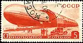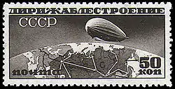 Марка с «Цеппелином» номиналом 65 центов 1930 года, выпущенная в апреле для панамериканского перелёта в мае-июне дирижабля «Граф Цеппелин»