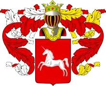 Герб потомков Захария Тимофеевича: в красном поле серебряный единорог, скачущий в правую сторону (польский герб Боньча).