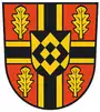 Герб: «В красном цвете чёрный крест с золотой каймой, покрытый четырьмя растущими золотыми дубовыми листьями, с сердечным знаком, сердечный знак черно-золотой косой, увенчан ромбом в смешанных цветах»"