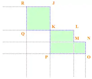 В дифференциальных исчислениях существует дискретная версия теоремы Грина, которая описывает отношение между двойным интегралом функции для обобщенной прямоугольной области D (область, которая образуется из конечного суммирования прямоугольников на плоскости) и линейной комбинации первообразной функции, заданной в углах области. В этом значении мы будем рассматривать популярную версию дискретной теоремы Грина.[1][2]