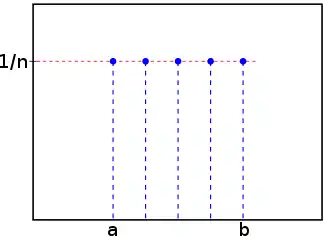 В теории вероятностей случайная величина имеет дискретное равномерное распределение, если она принимает конечное число значений с равными вероятностями, соответственно, вероятность каждого значения равна