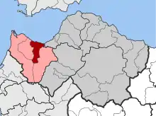 Административное деление общины: 1 — Дими 2 — слева направо: Ларисос, Моври, Оленос