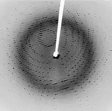 Дифракция от трехмерной периодической структуры, такой как атомы в кристалле называется дифракцией Брегга. Это похоже на то, что происходит, когда волны рассеиваются на дифракционной решётке. Брегговская дифракция является следствием интерференции между волнами, отражёнными от кристаллических плоскостей. Условие возникновения интерференции определяется законом Вульфа-Брегга: