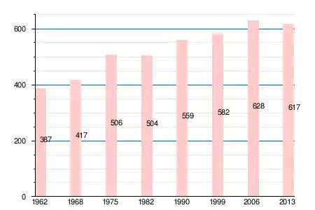 | 387 | 417 | 506 | 504 | 559 | 582 | 628 | 625 | 614 | 611 | 617 |