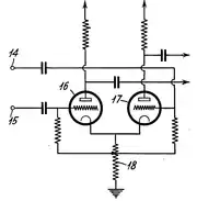 В 1934 году Брайан Мэтьюз изобрёл «биологический усилитель» на паре вакуумных триодов; его устройство хорошо усиливало дифференциальные сигналы, но плохо подавляло синфазные помехи[10]. В 1936 году Алан Блюмлейн запатентовал дифференциальный каскад с общим катодным резистором, предназначенный для усиления видеосигнала[10]; именно Блюмлейн дал дифференциальному каскаду его английское имя long-tailed pair (буквально «пара [триодов] с длинным хвостом» [катодным резистором]). В 1937 году, независимо от Блюмлейна, Франклин Оффнер изобрёл аналогичную схему и дополнил её цепью обратной связи, подавлявшей усиление синфазного сигнала, а Отто Шмитт предложил дифференциальный каскад на пентодах[10] и опубликовал развёрнутое описание триггера Шмитта — нелинейного элемента на базе дифференциального каскада[11]. Схемы Блюмлейна, Оффнера и Шмитта не были способны усиливать постоянное напряжение; первый полноценный дифференциальный усилитель постоянного тока с биполярным питанием и высоким сопротивлением общего катодного резистора предложил в 1938 году Ян-Фридрих Тённис[10][12]. В том же году Отто Шмитт описал особенности применения дифференциального каскада в качестве фазоинвертора; в 1941 году Шмитт опубликовал развёрнутый анализ схемы и предложил её вариант с двумя источниками тока (катодными резисторами)[13][комм. 2]. Во время Второй мировой войны дифференциальный каскад начали применять в логических схемах и аналоговых счётно-решающих устройствах военного назначения[14]; к концу 1940-х годов теория и способы расчёта дифференциальных каскадов на вакуумных лампах были полностью сформированы[15].