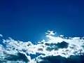 Синее небо с белыми облаками.