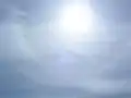 Облачное небо. Синий цвет неба рассеивается на дымке, но не полностью. Отсюда голубоватый оттенок