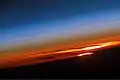 Закат. Красное небо вблизи солнца градиентно переходит в синее вдали от него.