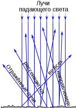 Диффузным отражение становится в том случае, если неровности поверхности имеют порядок длины волны (или превышают её) и расположены беспорядочно[2]. Критерием неровности поверхности по отражению является критерий Рэлея: