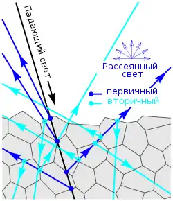Возможно диффузное отражение и от гладких поверхностей, если в прозрачной среде материала поверхности имеются центры рассеивания света — неоднородности, например, полированный белый мрамор или поверхность молока.