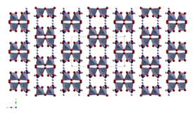 Оранжево-красные кристаллы принадлежат к моноклинной сингонии, пространственная группа C 2/c, параметры ячейки a = 1,327 нм, b = 0,754 нм, c = 0,778 нм, β = 93,70°, Z = 4.