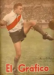 В том же сезоне он получил свои прозвища, сначала его прозвали «Немец» (исп. El Alemàn), а затем, по меткому замечанию журналиста Роберто Норбейгера, «Белокурая стрела» (исп. Saeta Rubia), за светлый цвет волос и хорошую физическую форму[19]. Болельщики даже придумали персональную кричалку для Альфредо: «Берегись! Летит Стрела! Белокурая она!» Тогда же Ди Стефано стал участником эпизода, оказавшего на него сильное влияние: его партнёр по нападению, Хосе Мануэль Морено получил камнем от болельщиков клуба «Тигре», Альфредо спросил Морено, нужна ли ему помощь, а Хосе Мануэль сказал: «Малыш, послушай меня внимательно. Если игрок вышел на поле, то он не покинет его по собственной воле, и это хорошо, потому что иначе он (как игрок) мёртв». Впоследствии Ди Стефано никогда не уходил с поля, как бы сильно его не били[41].