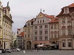 ![]() Северо-восточный угол Староместской площади с видом на улицу Длинную. | |