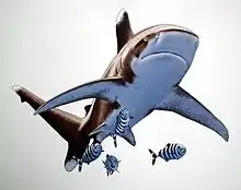 ![]() Акула в сопровождении рыб-лоцманов | ||||||||||