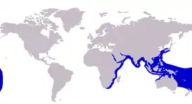 Широко распространены в Индо-Тихоокеанской области от юга Африки до Красного моря и Персидского залива, включая Мадагаскар, Реюньон, Маврикий, Коморские и Сейшельские острова вдоль побережья Южной и Юго-Восточной Азии до западной Австралии и Фиджи. На север до островов Рюкю и на юг до Новой Каледонии и Нового Южного Уэльса[9].