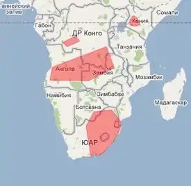 Встречается на территории Анголы, Ботсваны, южных окраинах ДРК, в национальных парках Кении, в Лесото, Южной Африки, Свазиленда и севере Замбии.