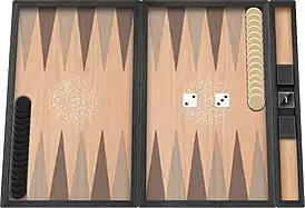 | Инвентарь | Доска, шашки: 15 белых и 15 чёрных, две игральные кости |