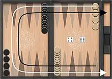 Игрок должен пройти всеми шашками полный круг (против часовой стрелки), зайти ими в «дом» и «выбросить» их раньше, чем это сделает противник. «Домом» для каждого игрока считается последняя четверть игрового поля — «дом белых» (1-6) и «дом чёрных» (13-18). Термин «выбрасывать» означает делать шашкой такой ход, чтобы она оказывалась за пределами доски. «Выбрасывать» шашки можно только после того, как все шашки «пришли в дом». Следовательно, белые идут из зоны 19-24 в зону 1-6, а чёрные из зоны 7-12 в зону 13-18.