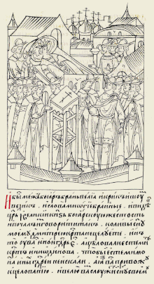 Именно на пути в этом богомолье в следующем году младенец Дмитрий и скончался. Источник, в котором подробней всего описывается эта смерть — «Московский летописец»[8].