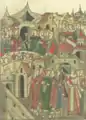 ![]() Дмитрий Михайлович убивает Юрия Даниловича Московского в Орде. Из «Царственного летописца» | |