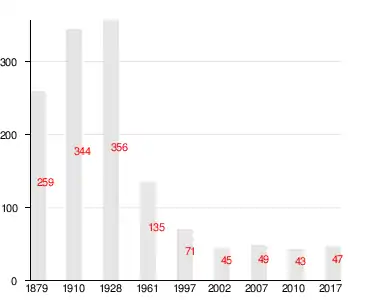 Число жителей по семейным спискам 1879 г.: 122 м. п., 137 ж. п.; по приходским сведениям 1879 г.: 123 м. п., 122 ж. п.[4]